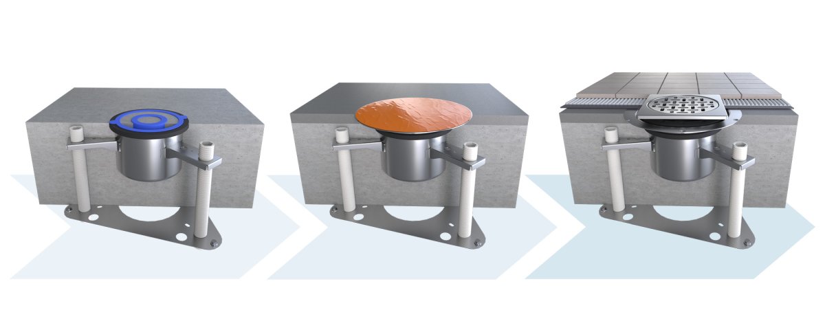 Liten rostfri golvbrunn idealisk för våtutrymmen i offentliga miljöer som duschar och omklädningsrum. Finns på lager för snabb leverans.
