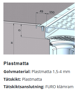 - Vid längder upp till 2000 mm och rekommenderat djup på 56/36 mm blir fall mot utlopp minst 1 %.