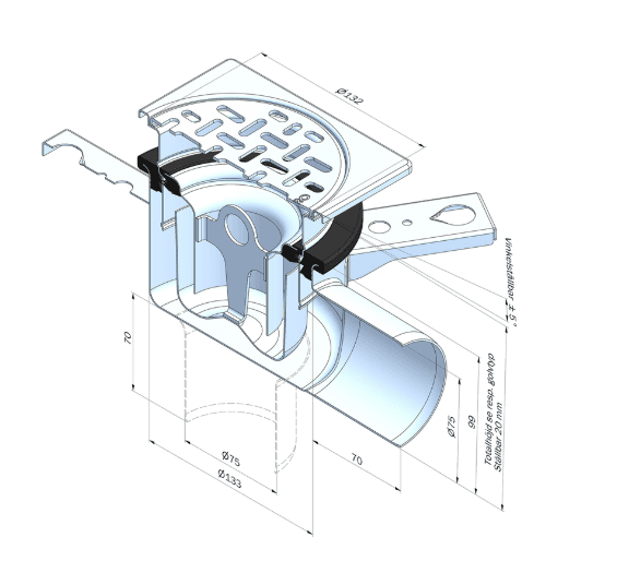 Rostfri golvbrunn för offentliga våtutrymmen som badhus, duschrum, omklädning, bastu och SPA-anläggningar.