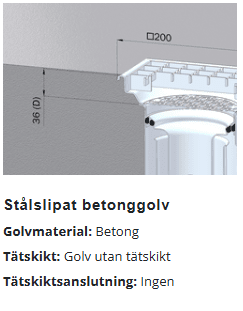 - Stålslipat betonggolv: 36 mm