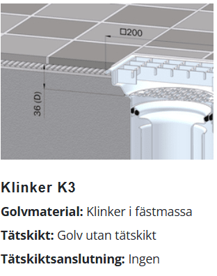 Klinkergolv K3 utan tätskikt
