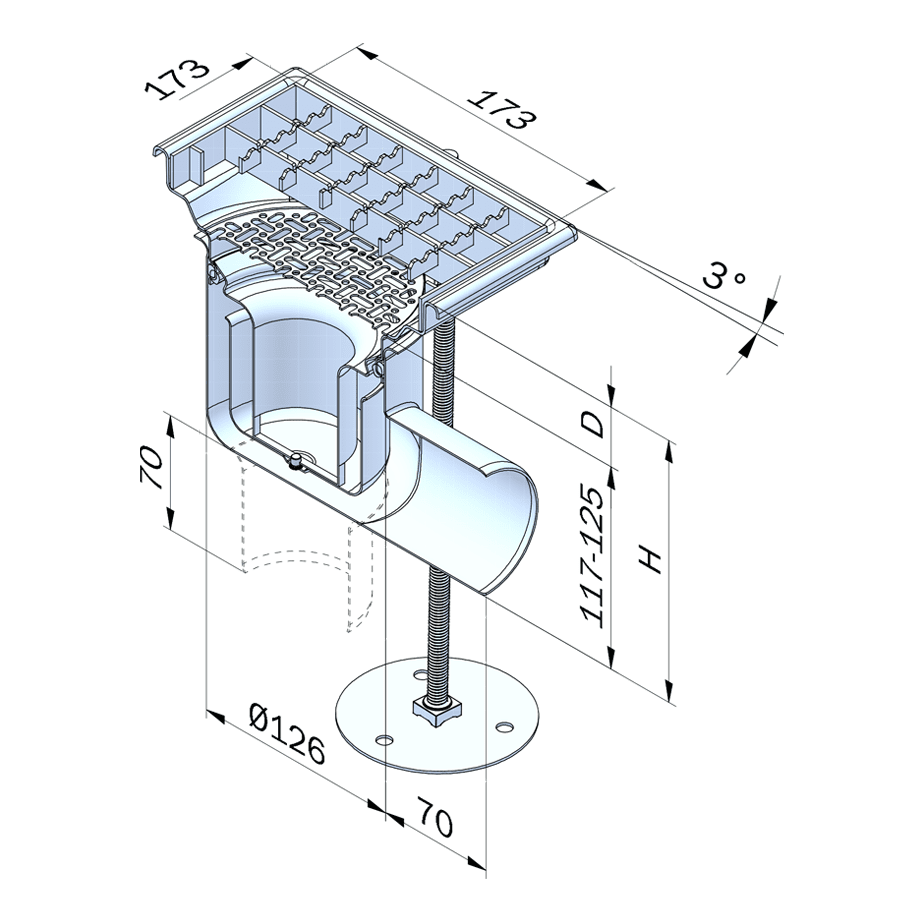 För att underlätta produktvalet anger vi totalhöjden (H) på våra brunnar och rännor. Totalhöjden är avståndet från färdig golvyta ner till där vattnet lämnar produkten. Vid bottenutlopp räknas mätpunkten där stosen börjar.