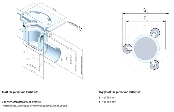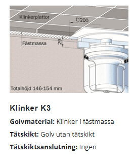 Fall mot utlopp är anpassat efter produkt och golvtyp.