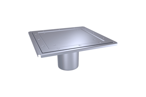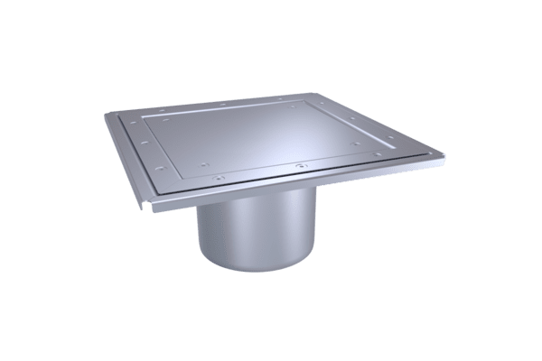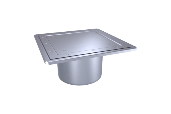 Rensbrunn/spolbrunn av rostfritt stål för ingjutning i betonggolv