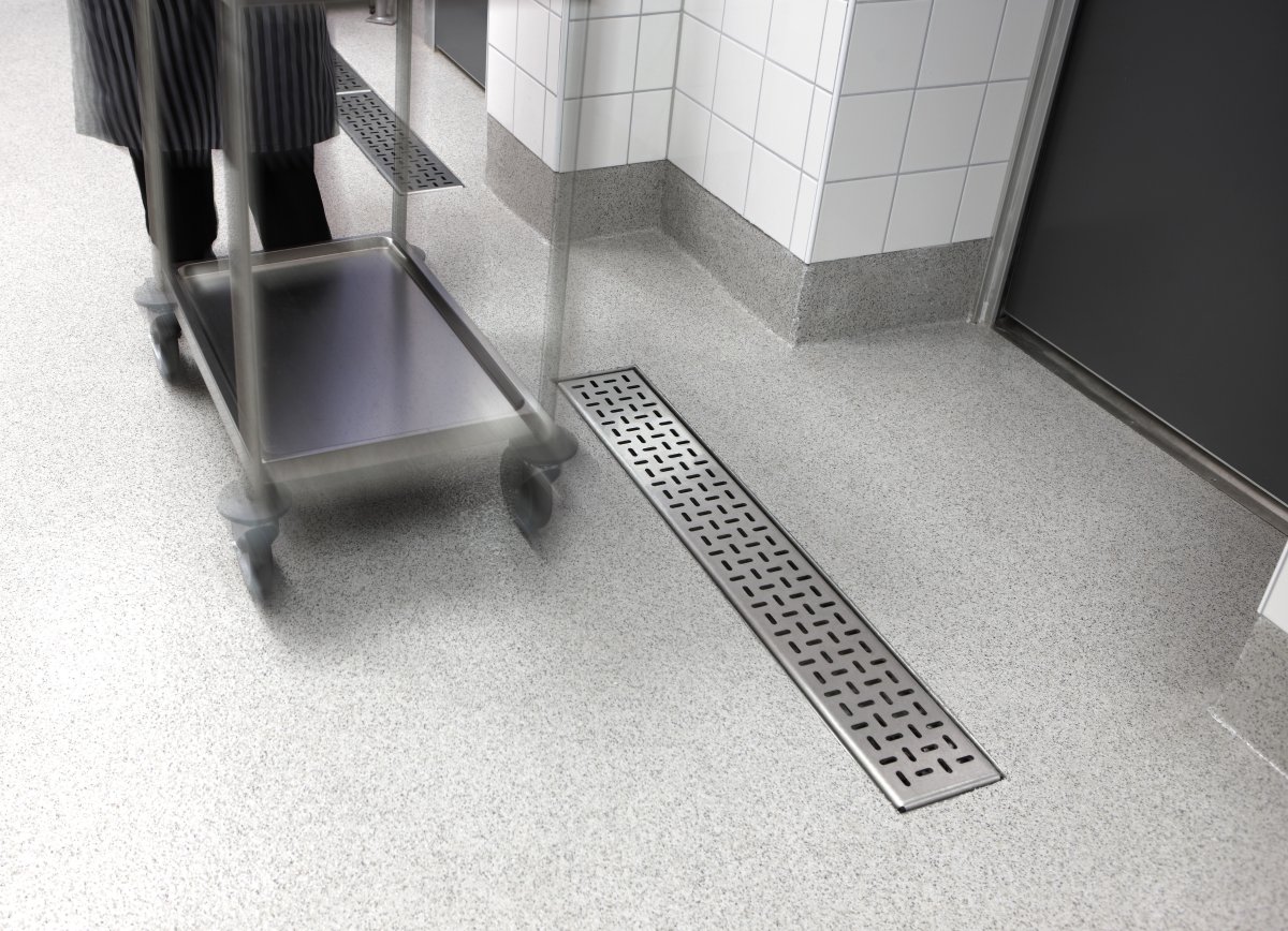 Rännan är idealisk som spärränna eller städränna vid passager mellan olika utrymmen i kök, restaurang och industri. Tillverkad i syrafast rostfritt stål, kvalitet EN 1.4404 (SS 2348) som bättre står emot korrosion av salt och starka kemikalier som används vid städning. Rännan kan även beställas i rostfritt EN 1.4301 (SS 2333). Avsedd för ingjutning i betonggolv. Finns även anpassad för träbjälklag. Anpassad för flera vanliga golvtyper och har 360° vridbart och vinkelställbart utlopp.