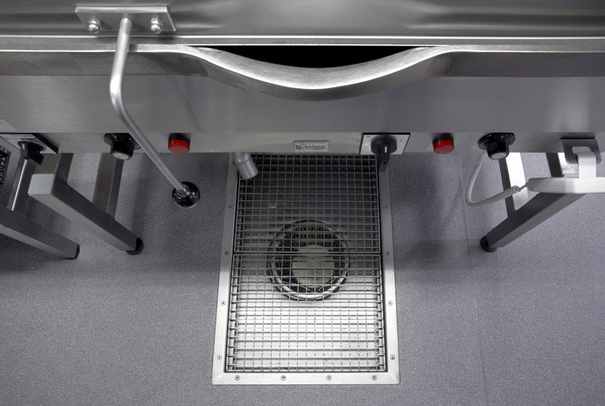 • För användning med kokgrytor: Ett överdelsdjup på 150 eller 200 mm rekommenderas. Botten steg-bockas, vilket ger ett fall mot utloppet på minst 7%.