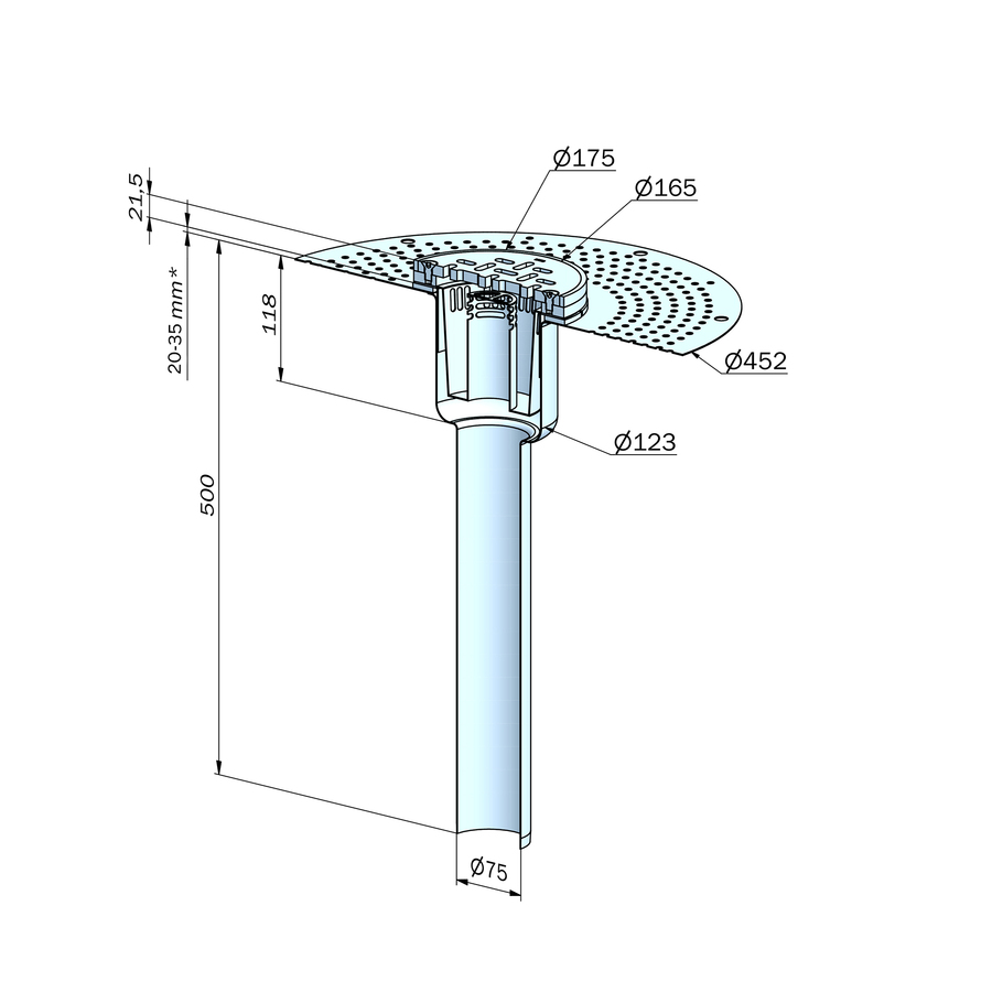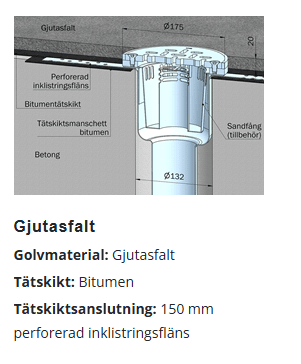 - Flexibel och enkel installation – Anpassad för montage i betongbjälklag med förborrat hål Ø 132 mm. Det långa, kapbara utloppsröret Ø 75 mm eliminerar behovet av skarvar i bjälklaget och förenklar installationen.