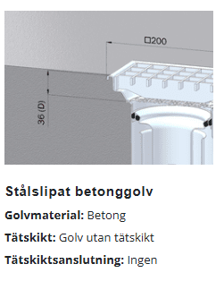 Fall mot utlopp är anpassat efter produkt och golvtyp.