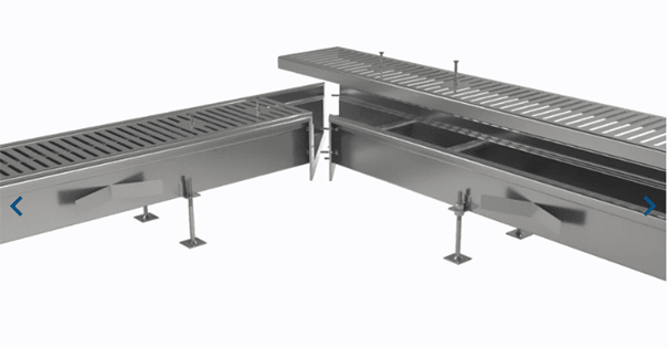DryLine® Flex markränna av rostfritt stål, som lämpar sig för ytvattenavledning i parkeringsanläggningar, gårdsområden, terrasser och omvända konstruktioner, dimensioneras för objektet enligt plan med hänsyn till den erforderliga belastningsklassen och de inre fall. De anpassade markrännorna ger möjlighet att förverkliga en lättinstallerad och med andra brunnsprodukter integrerad linjeavvattningslösning för även krävande objekt. Alla markrännor är utrustade med gjutfäste och monteringsfötter, som gör det enkelt att placera rännan i rätt höjd