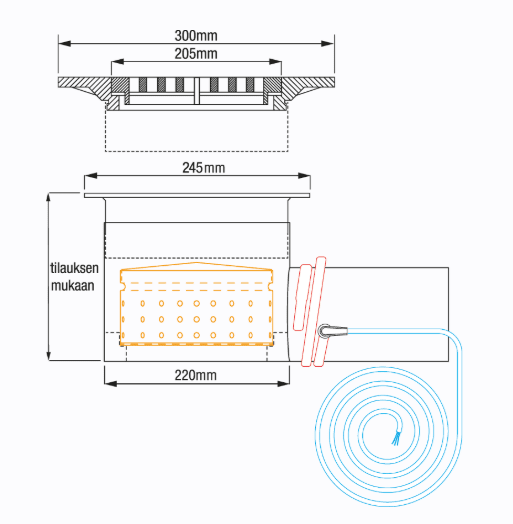 Brunnen är utformad för att effektivt samla upp regn- och smältvatten från ytan och leda det vidare till dagvattensystemet. Den förses med galler eller lock anpassat för aktuell belastningsklass (t.ex. B125, C250 eller D400 beroende på placering och trafiklast).