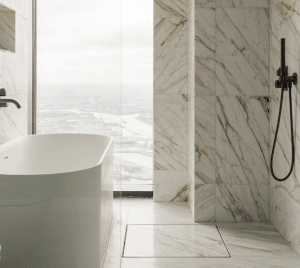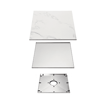 Vieser Square Tile insert -sil kan kan kläs med klinker eller annat ytmaterial (t.ex. mikrocement eller harts)