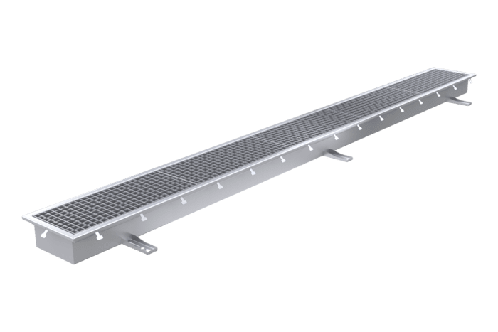 Golvränna utan utlopp, utvecklad för att samla upp och hantera regn- och smältvatten i miljöer där anslutning till avlopp eller oljeavskiljare inte är möjlig. Rännans konstruktion fördelar vattnet jämnt och främjar effektiv avdunstning. Tillverkad i syrafast rostfritt stål för hög korrosionsbeständighet och lång livslängd, och är ett driftsäkert val för områden med mindre vattenmängder och behov av hållbar vattenhantering.