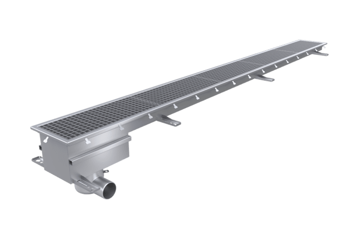 Robust och hållbar sandfångsränna i rostfritt stål utrustad med en upplyftbar sandfångslåda. Golvrännan är idealisk för industri, verkstäder och andra krävande miljöer där effektiv partikelavskiljning är avgörande. Tillgänglig för flera olika belastningsklasser och golvtyper.