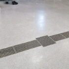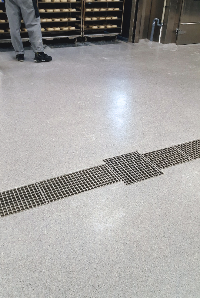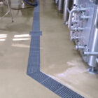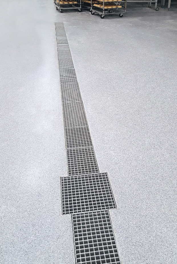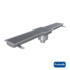 Golvrännan har utloppsdel med urtagbart vattenlås med handtag.