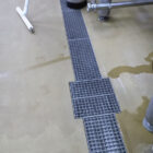 Rostfritt, körbart rutgaller utfört i delar med max vikt 8 kg per del.